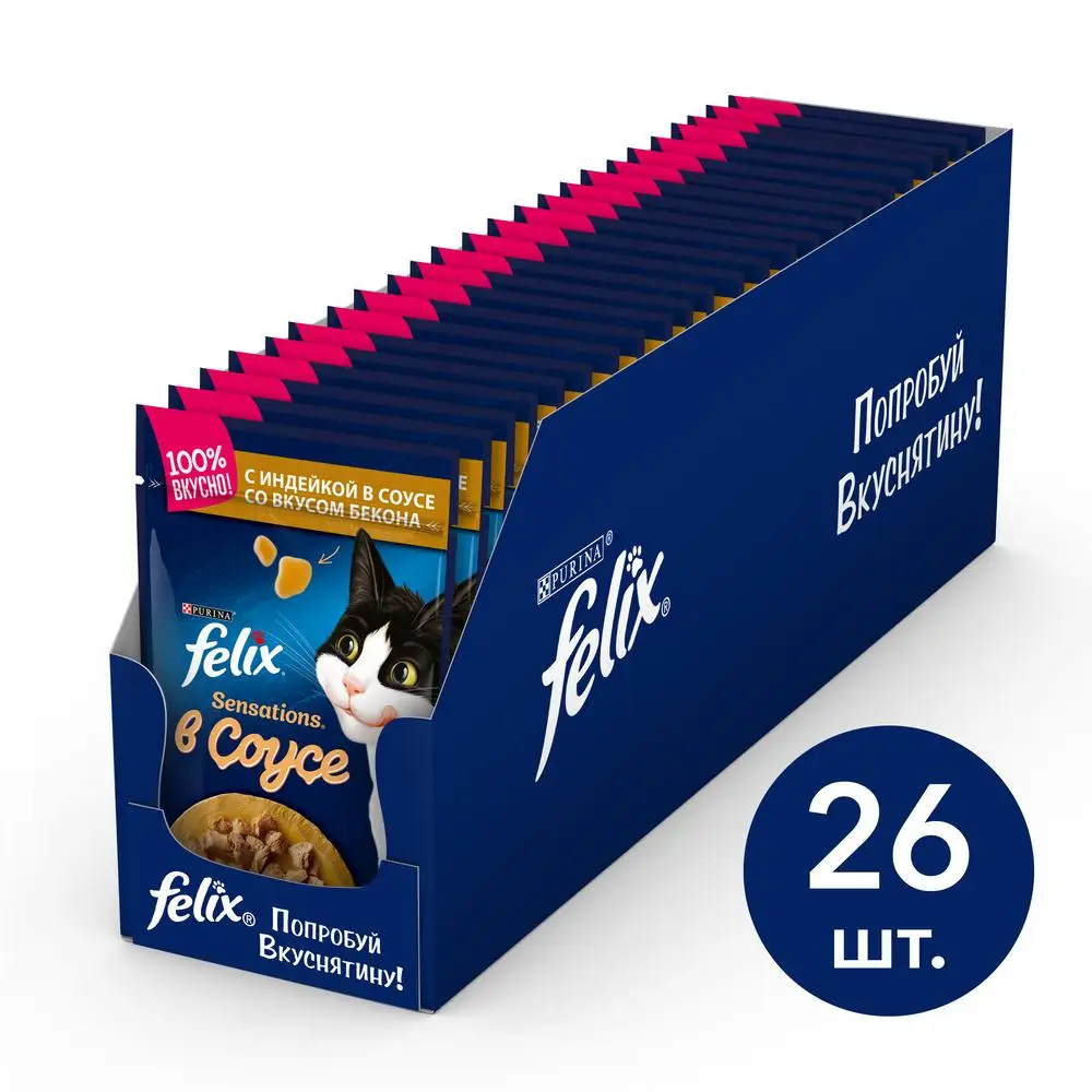 Wet Food Felix Sensations For Adult Cats With A Turkey In A Sauce With A Taste Of Bacon Spider 85g 26 Pcs Aliexpress Home Garden